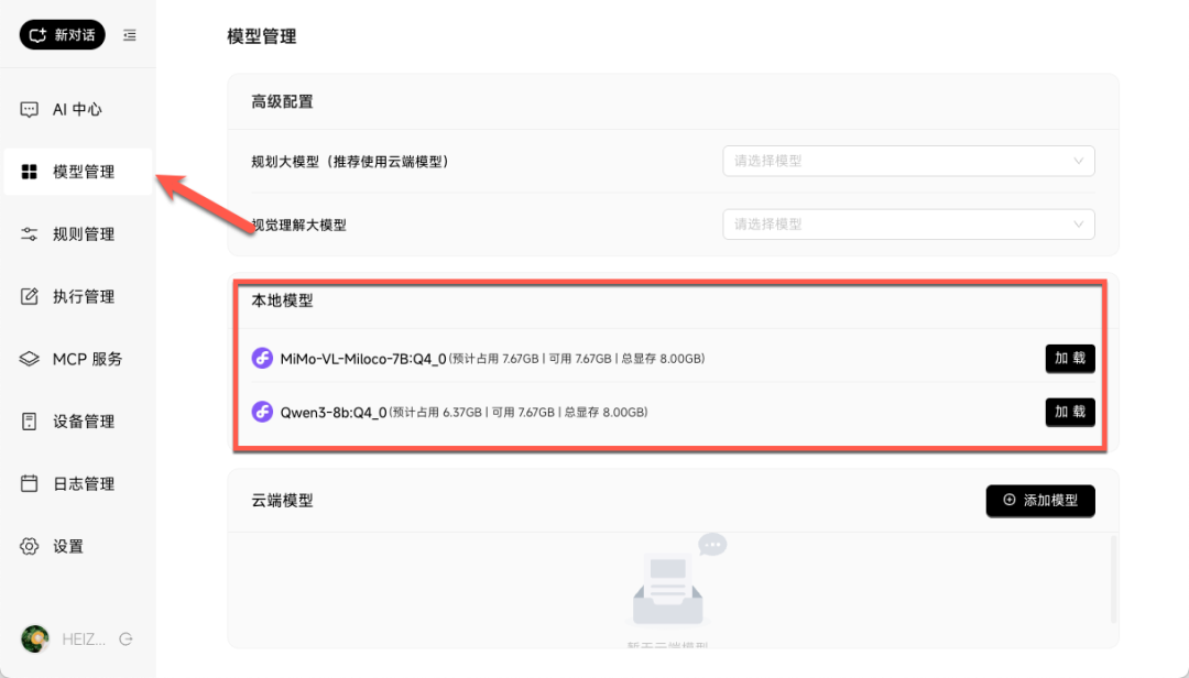 先对接一下 AI 模型,我部署的是带 AI 引擎的所以可以加载本地模型