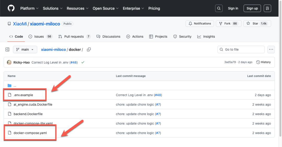 可以去 GitHub(https://github.com/XiaoMi/xiaomi-miloco/tree/main/docker) 下载配置文件和模版