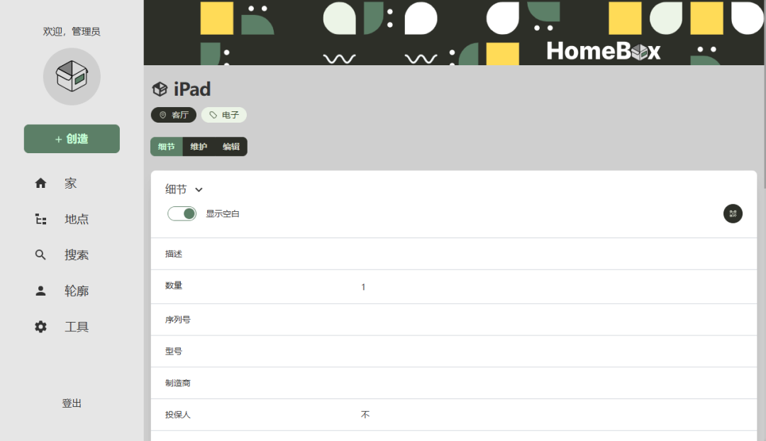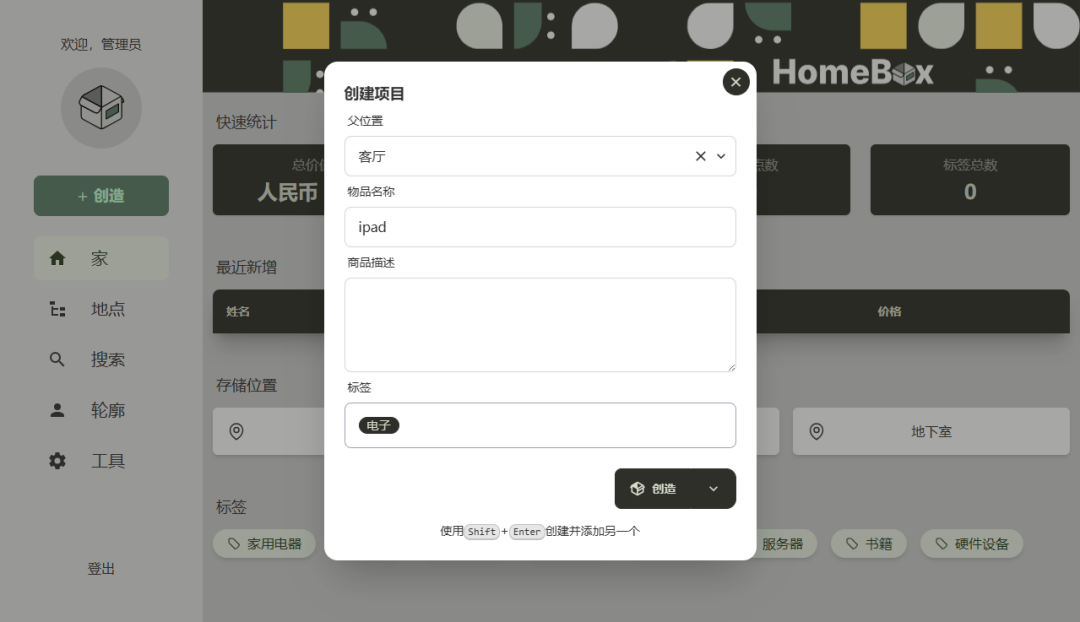 目前来说 Homebox 是我用过,为数不多比较好用的库存系统,适合家庭小型仓库进行记录物品。通过“位置—标签—物品”的结构化方式,帮助用户高效组织和追踪各类资产,界面简洁直观,功能覆盖日常所需:支持多级位置管理、自定义标签、物品详情记录、二维码生成、数据导入/导出、多用户协作以及个性化主题切换等。