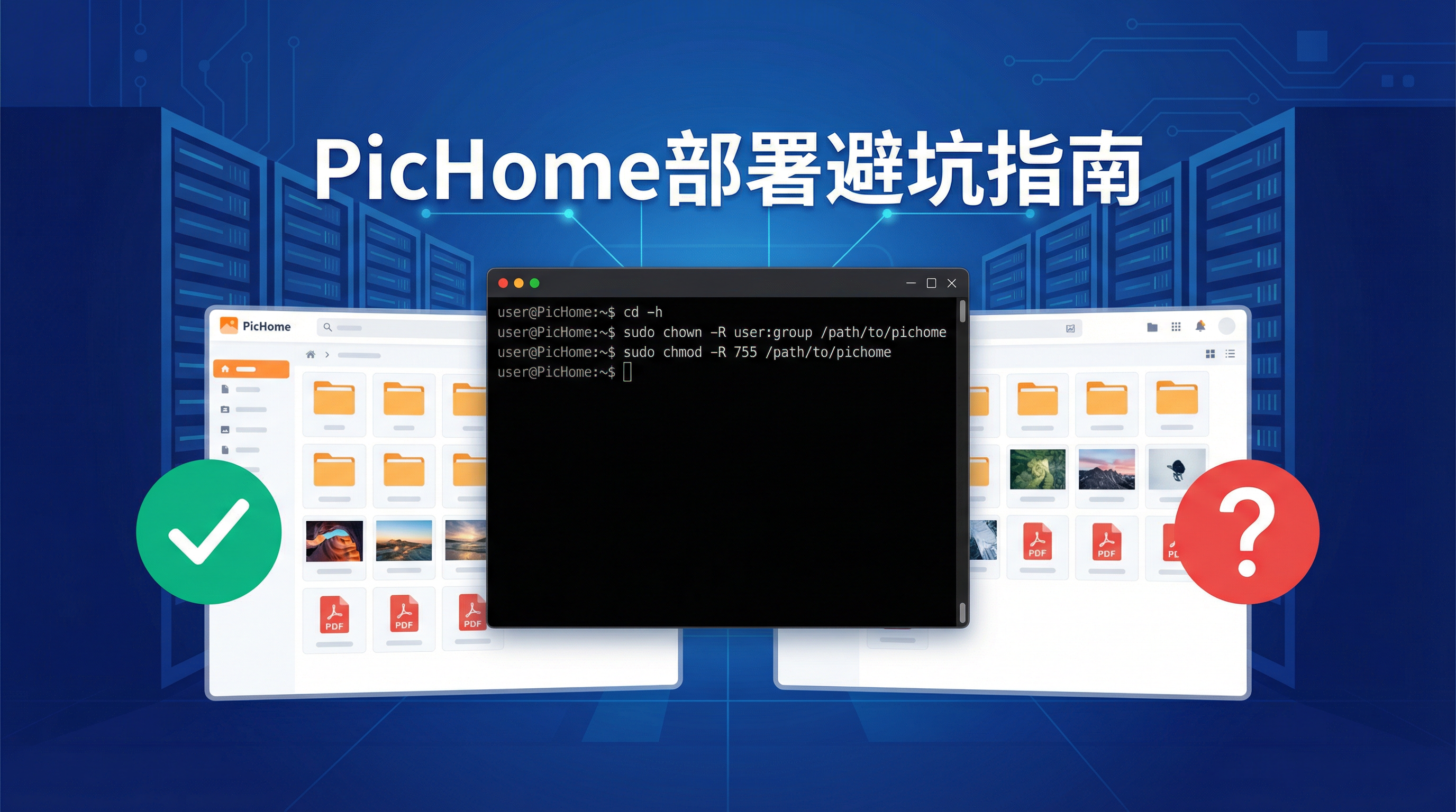 输入后敲回车,系统就会自动在后台帮你把所有权限和归属修正好,然后你再去 PicHome 后台点击同步,就能秒更新。