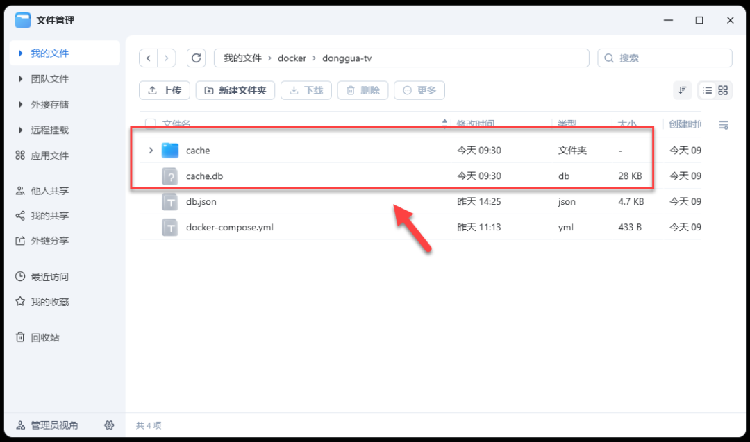 TIP:项目启动会自动创建文件夹,并且 cache.db 文件大小也会有变化