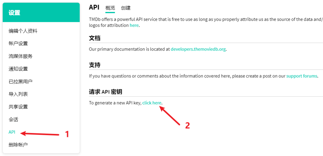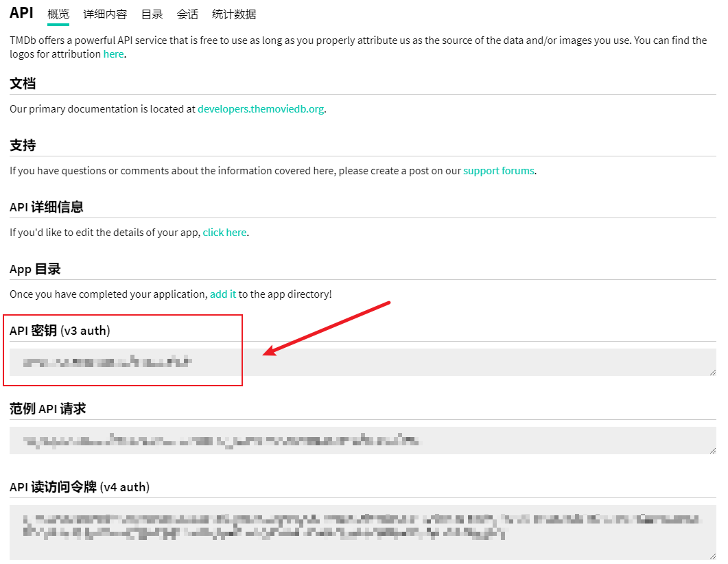 需要有 The Movie Database 提供的密钥,用于获取影视信息。具体详细的步骤之前也写过教程,可以看关联的“TMDB 获取 API”的文章,
