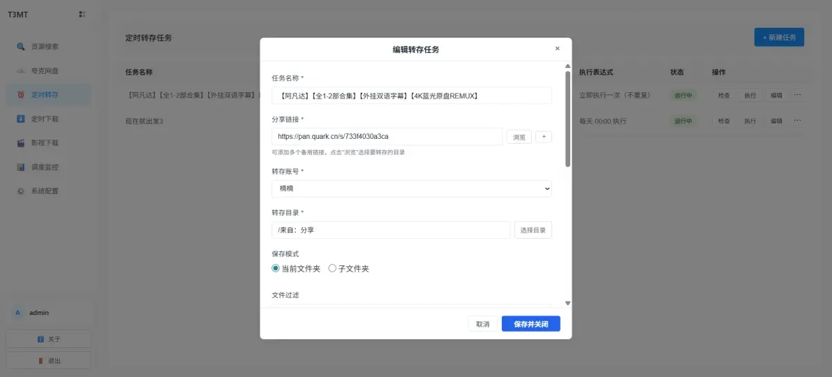 ✅ 定时转存:批量导入分享链接,设置执行时间,自动转存到网盘,不怕链接过期!