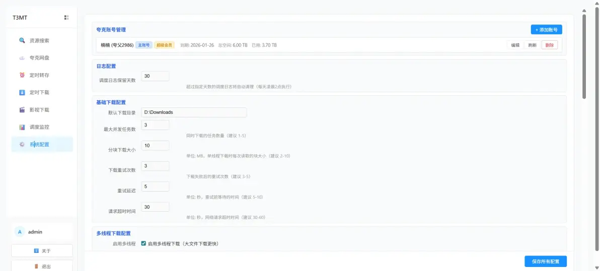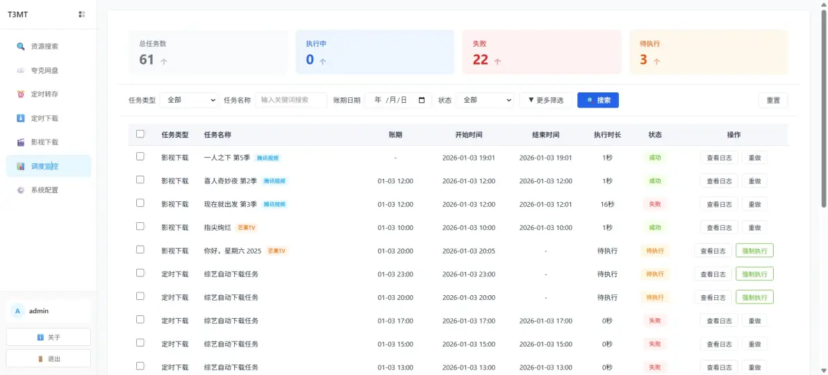✅ 日志查询:多条件筛选任务日志,哪次转存成功、哪次下载失败,一键排查问题~