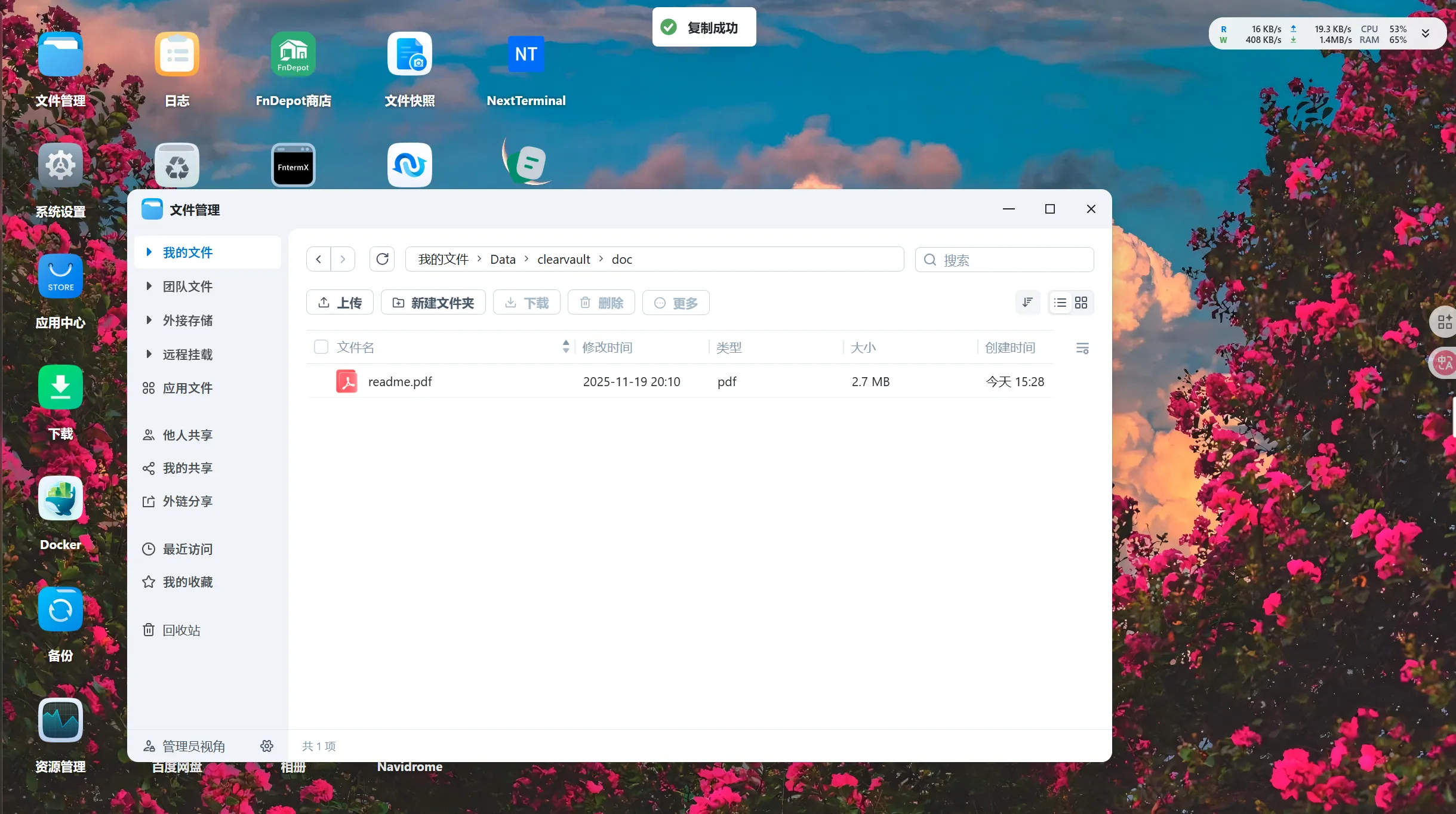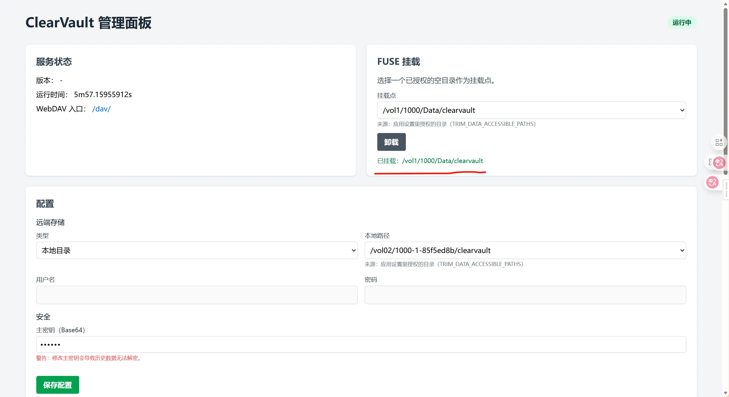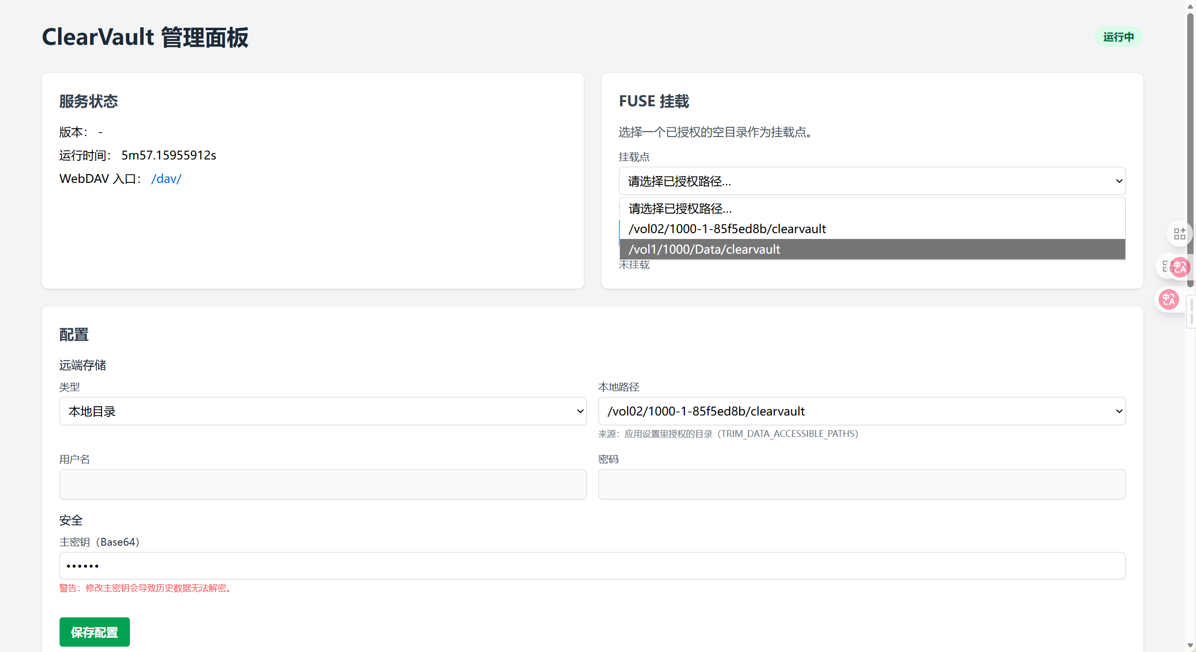 至此,您已完成 ClearVault 在飞牛 OS 上的全部配置,可以享受安全、便捷的端到端加密云存储体验了。
