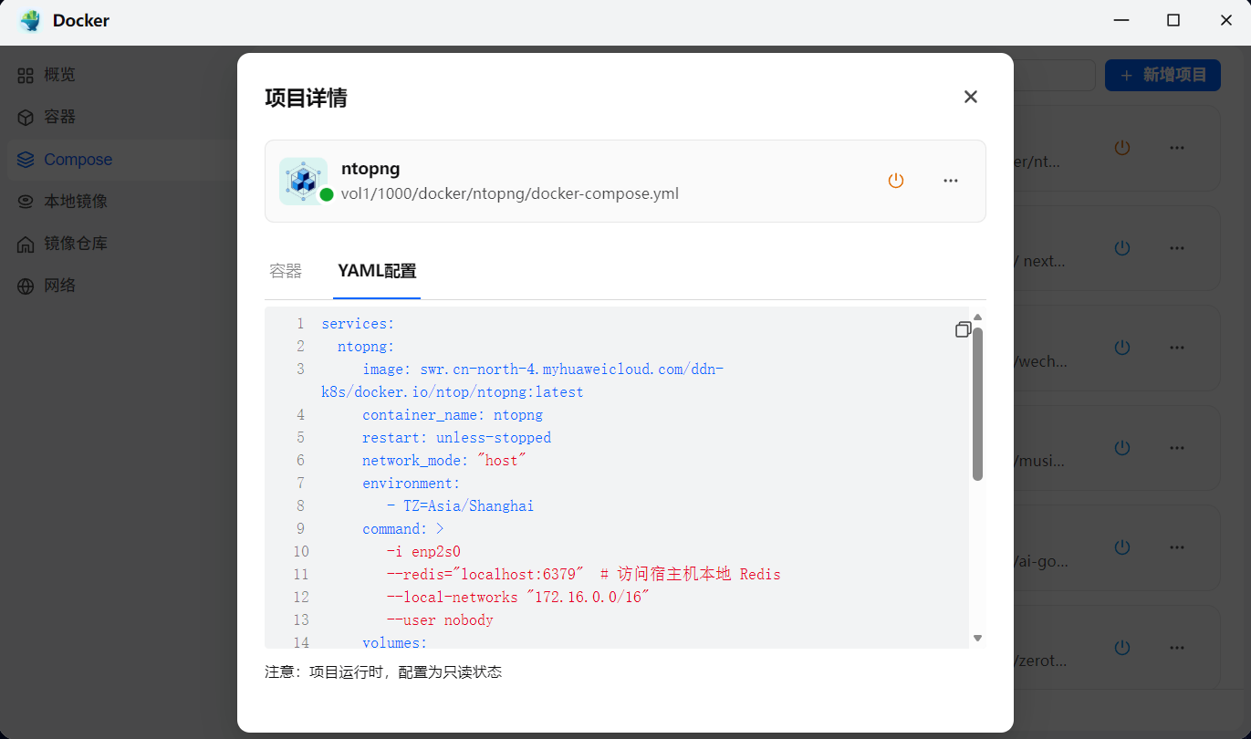 你提供的是一段用于部署 ntopng 网络监控工具的 Docker Compose 脚本,但脚本末尾命令不完整(dock),且存在潜在配置问题。以下是修正后的完整脚本,并附上说明。