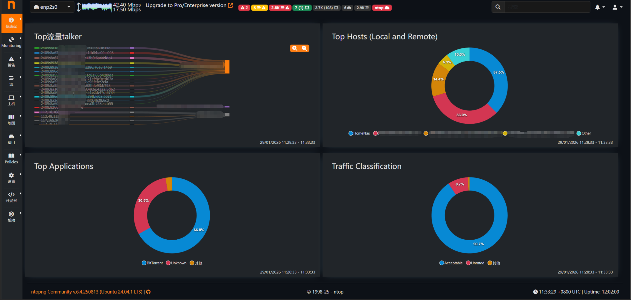 📊 NAS网络监控神器ntopng!实时查看上传流量,避免"意外限速" 🚀