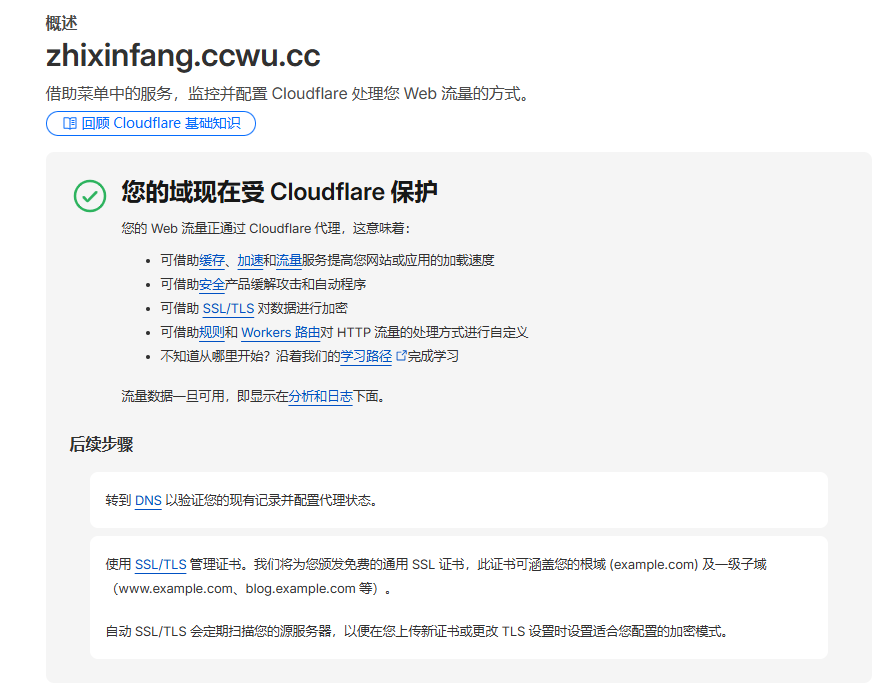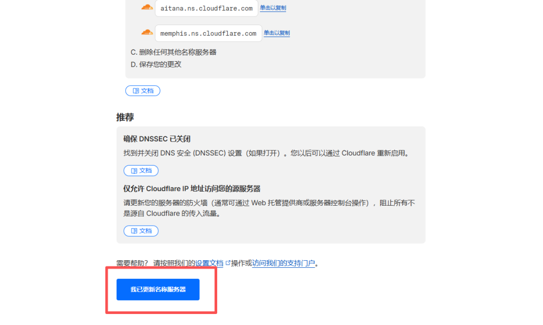 在返回Cloudflare官方刚刚的页面,点击“ 我已更新名称服务器 ”