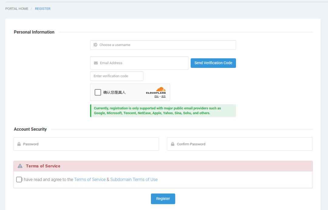 2️⃣点击侧栏免费域名,转跳到申请页面