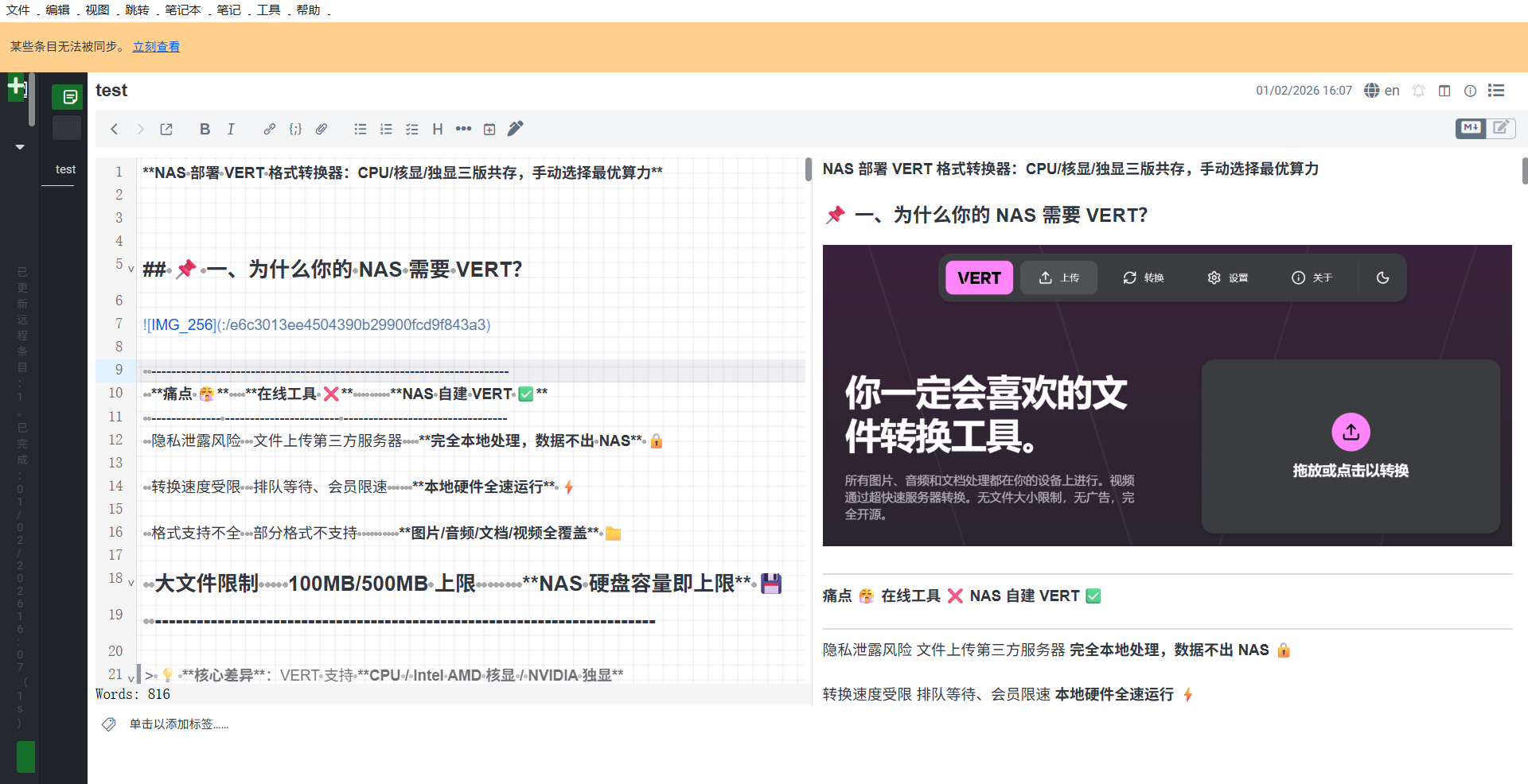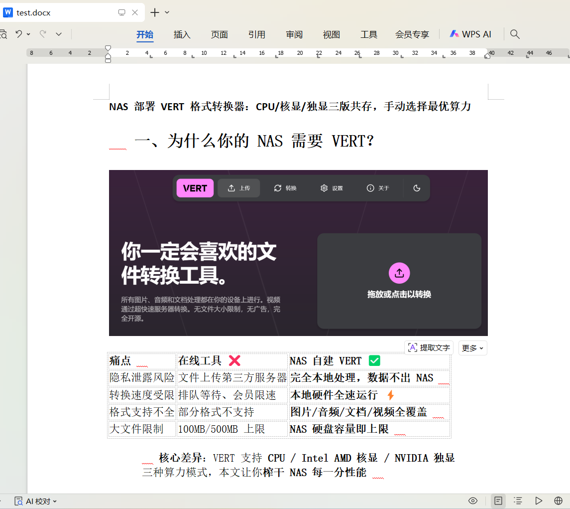 痛点 😤 在线工具 ❌ NAS 自建 VERT ✅