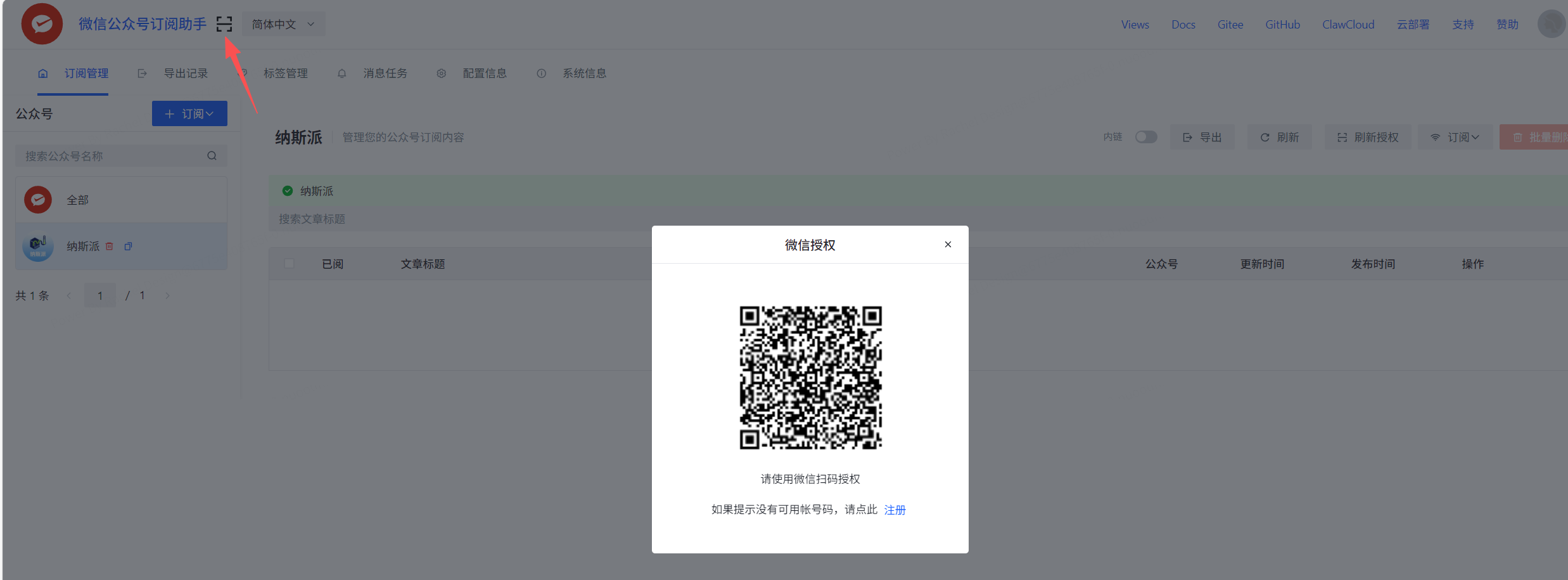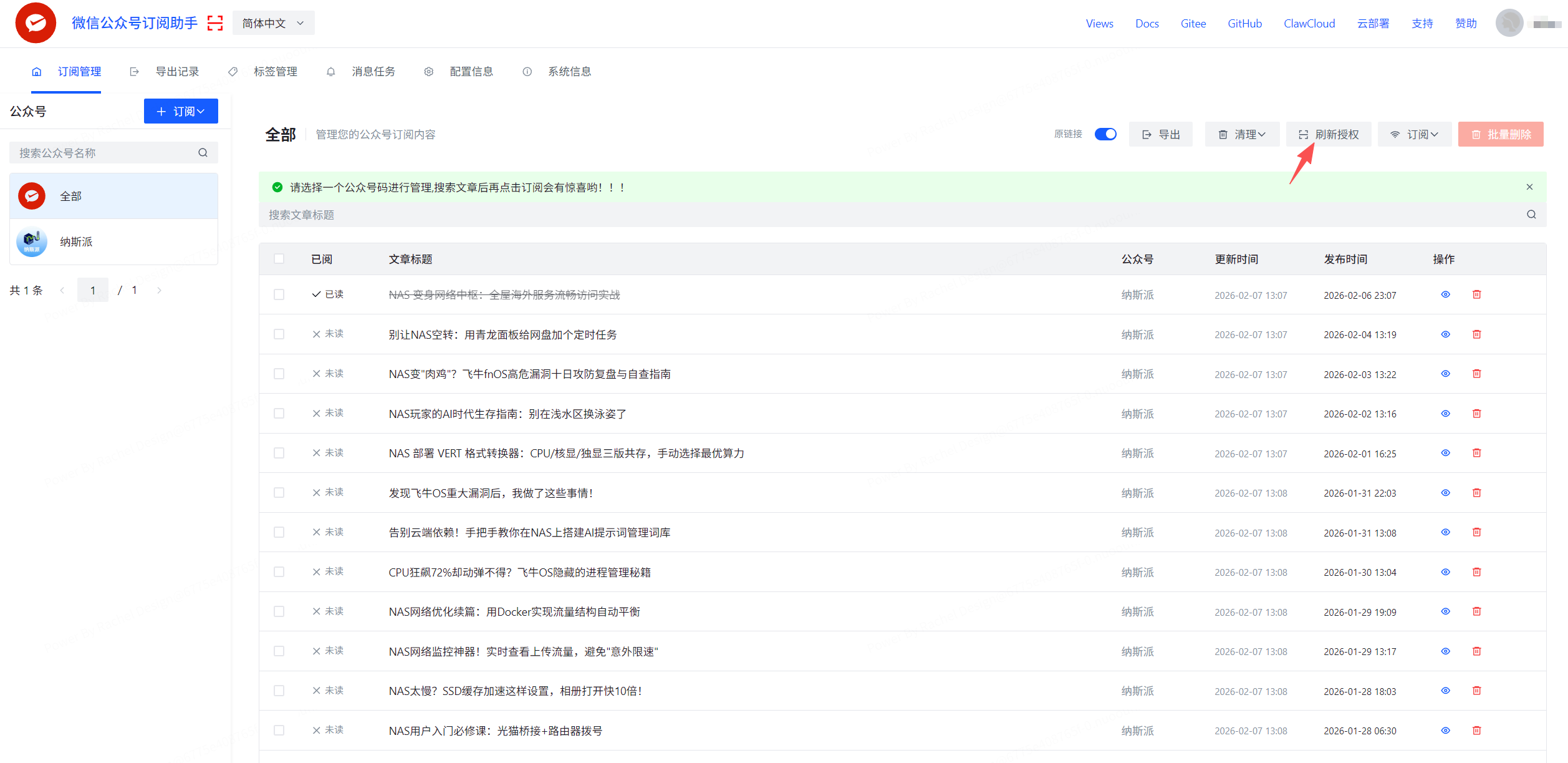 1️⃣ NAS部署WeRSS,扫码授权微信