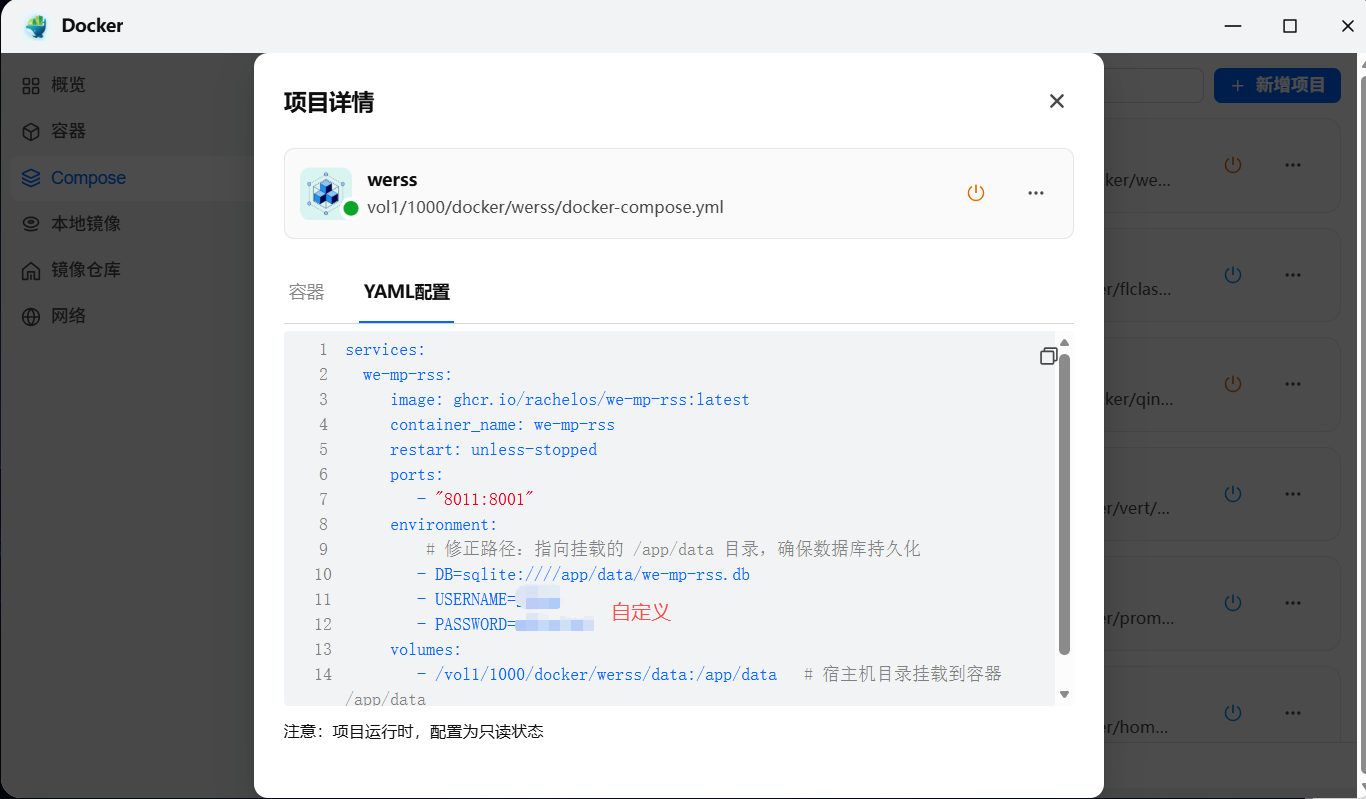 - /vol1/1000/docker/werss/data:/app/data # 宿主机目录挂载到容器 /app/data