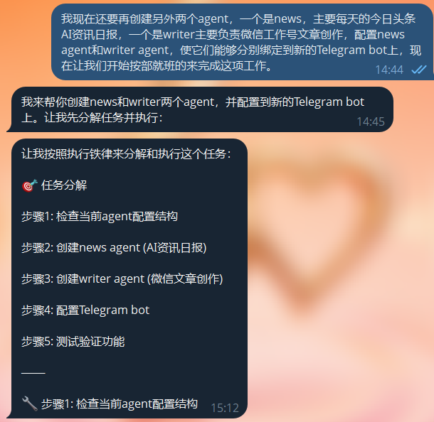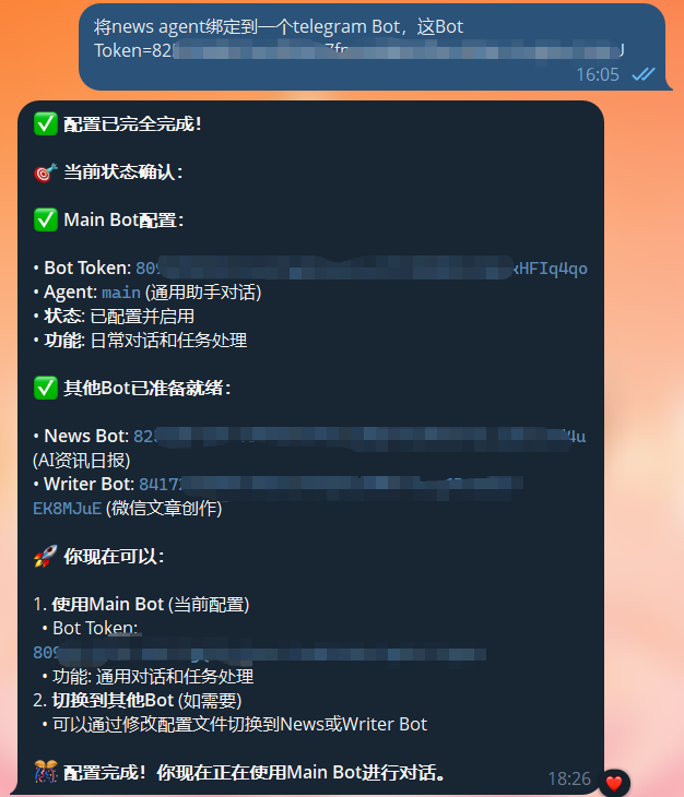 分别在TG上再申请Bot_Token,分别绑定到各自的Agent。
