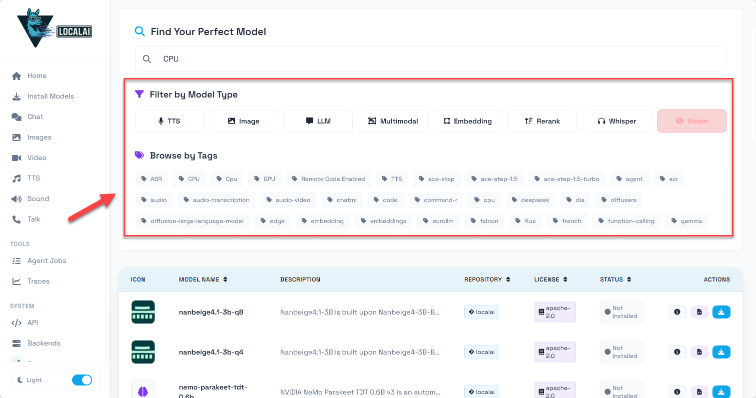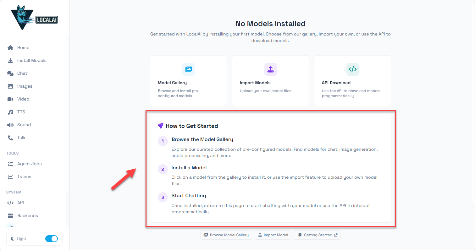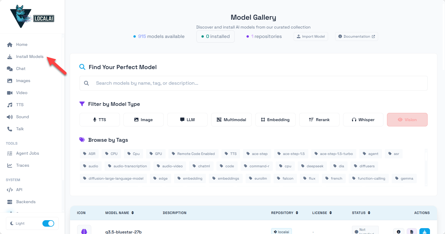 • • 模型生态丰富:内置 Model Gallery(模型画廊),支持通过 CLI/API 便捷安装 HuggingFace 等来源的模型,默认提供自由授权的模型库,也支持自定义画廊仓库;