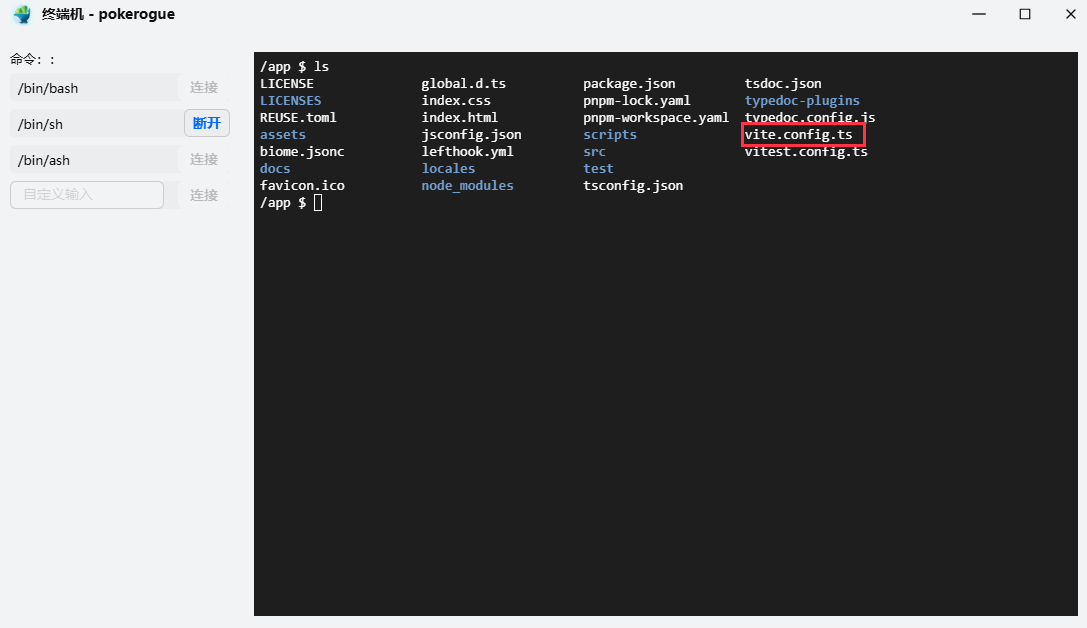 接着是进入容器终端内,找到 vite.config.ts文件