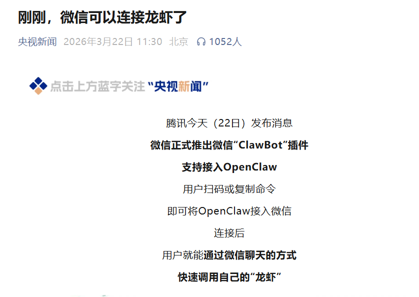 央视新闻为微信龙虾🦞发声