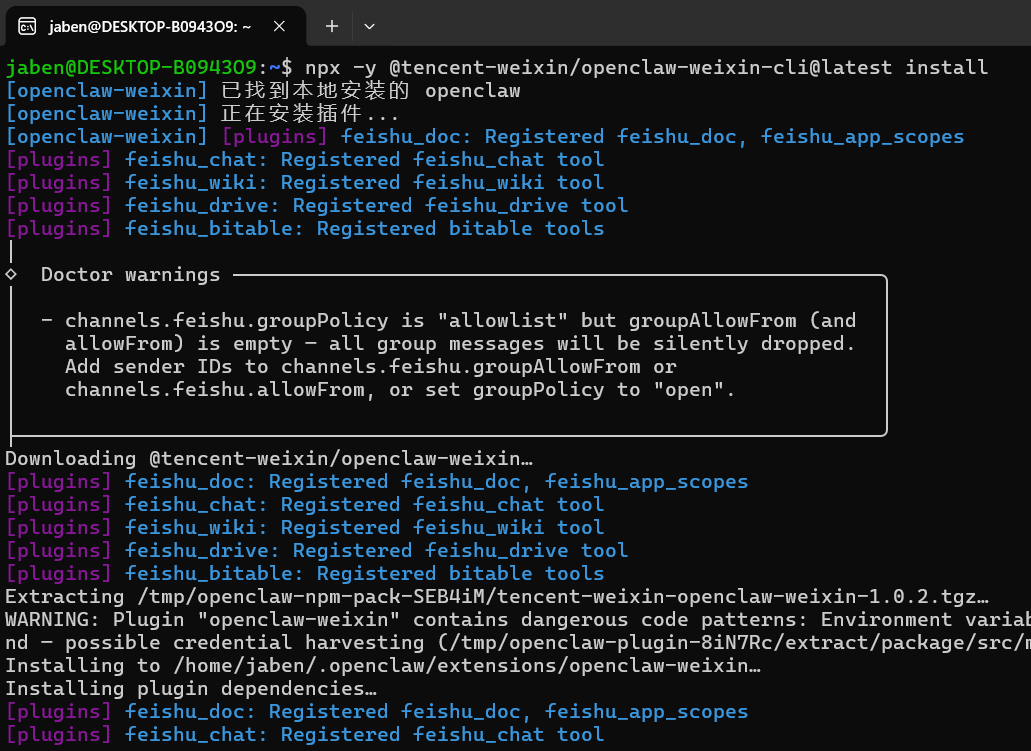 npx -y @tencent-weixin/openclaw-weixin-cli@latest install