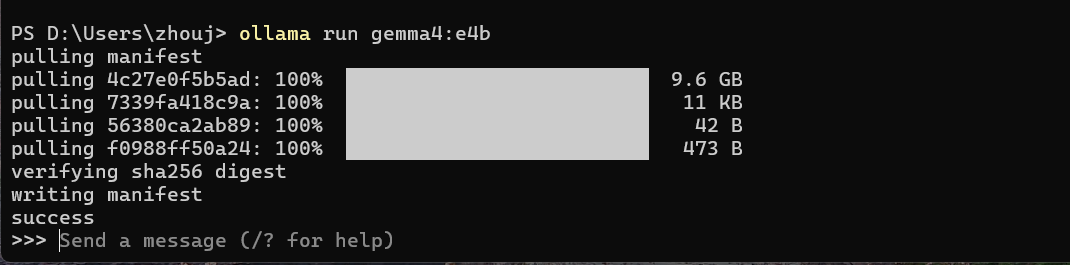 第一次拉模型会慢一点,这个主要看网络和模型大小,耐心等它跑完就行。