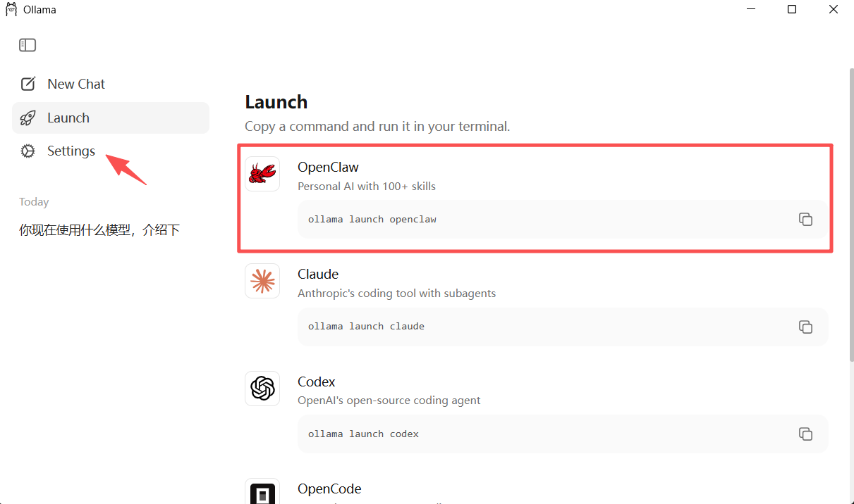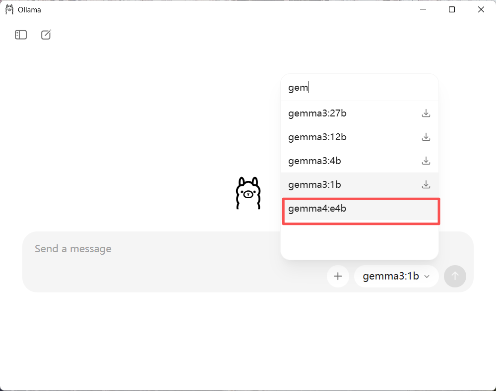 下载完成后,就可以通过Ollma客户端选择已下载的模型: