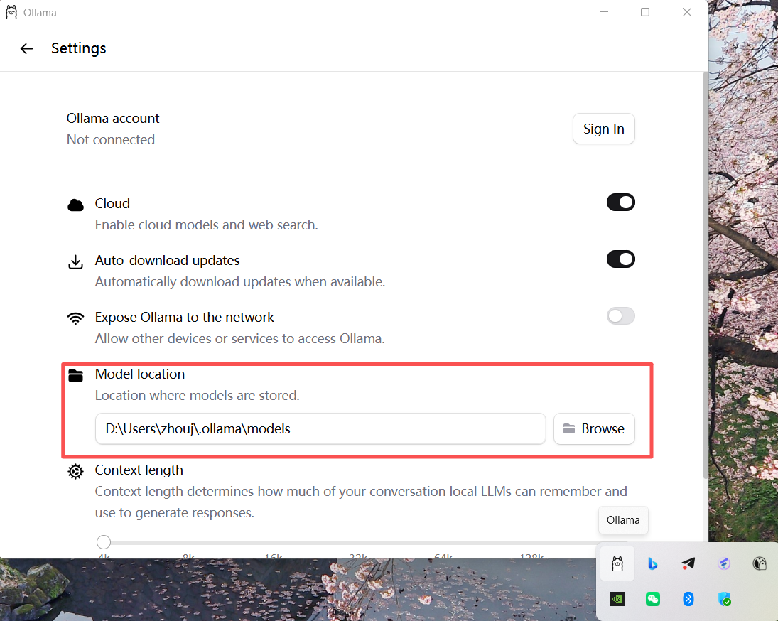 温馨提示:C盘空间不够的话,先更改Ollma模型设置路径