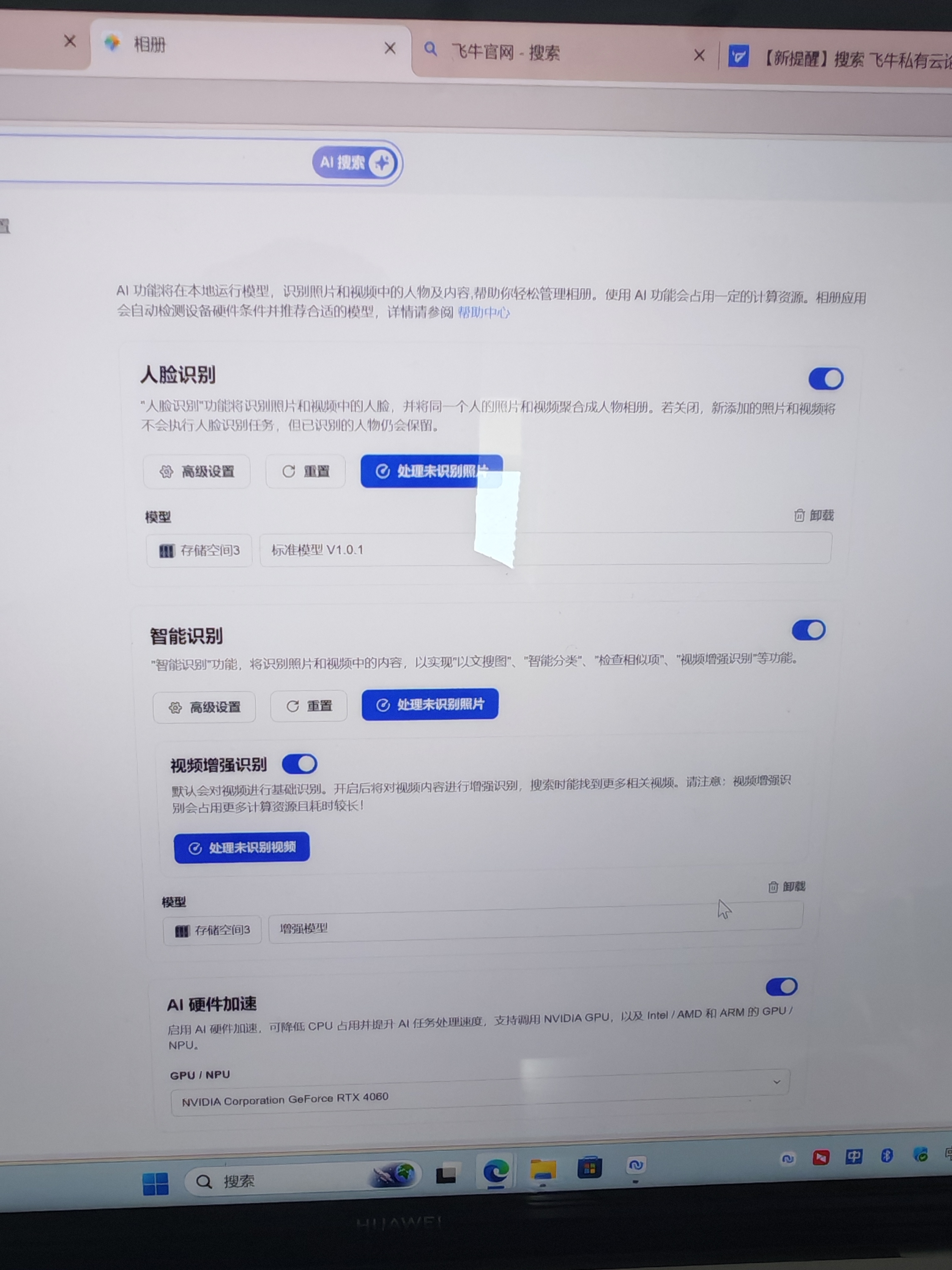 BUG现象:我通过 笔记本电脑访问、手机app访问,相册,智能识别和视频增强识别报错unknown err。从上一个系统版本出现这个问题,然后更新到最新版本的系统1.1.26,依旧无法使用。模型使用本地模型重新安装过,无法使用。使用了在线安装增强模型以后还是无法使用。