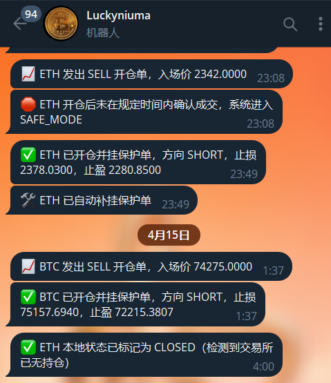 场景 1:LuckyNiuMaNote — 加密货币实盘自动交易