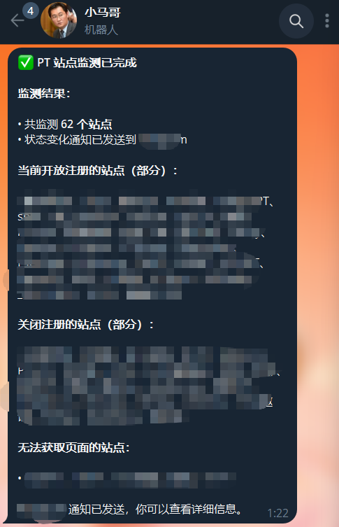 • PT 站注册监控(62 个站点,开放自动通知)