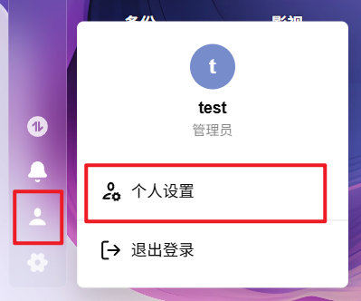 个人设置的入口:点击左侧头像后,选择「个人设置」。