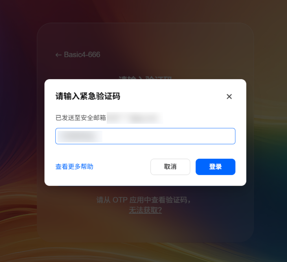 步骤 2:系统会向账号已设置的安全邮箱发送一次性「紧急验证码」。