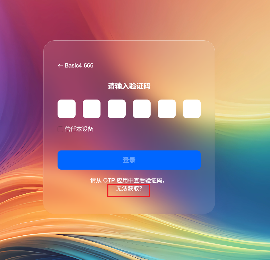 步骤 1:在登录的第二步验证界面,如果无法从 OTP 应用中获取验证码,点击「无法获取」。