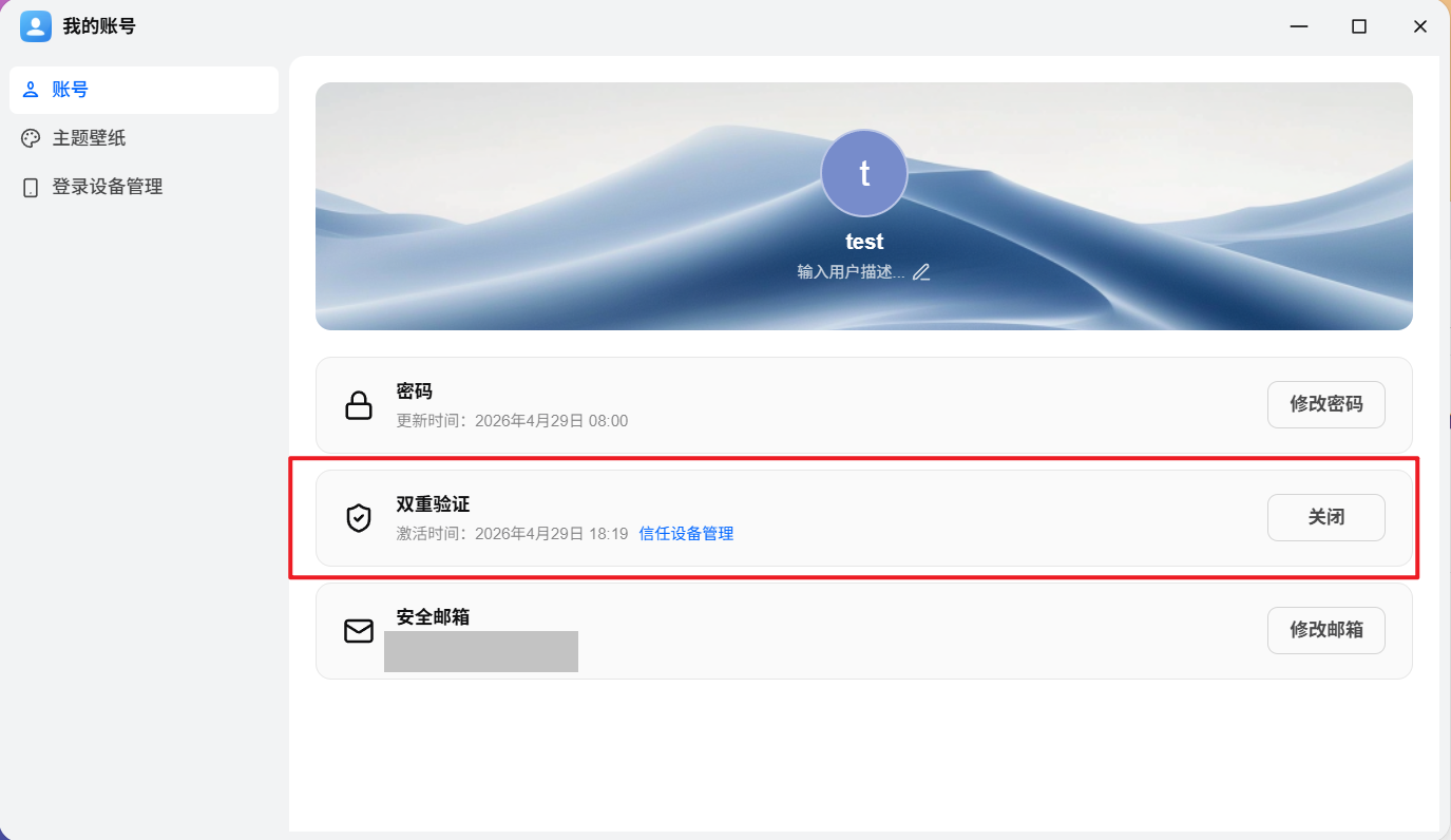 步骤 4:登录成功后,进入「个人设置」中的账号页,关闭双重验证;如仍需要使用 2FA,可重新绑定并设置。